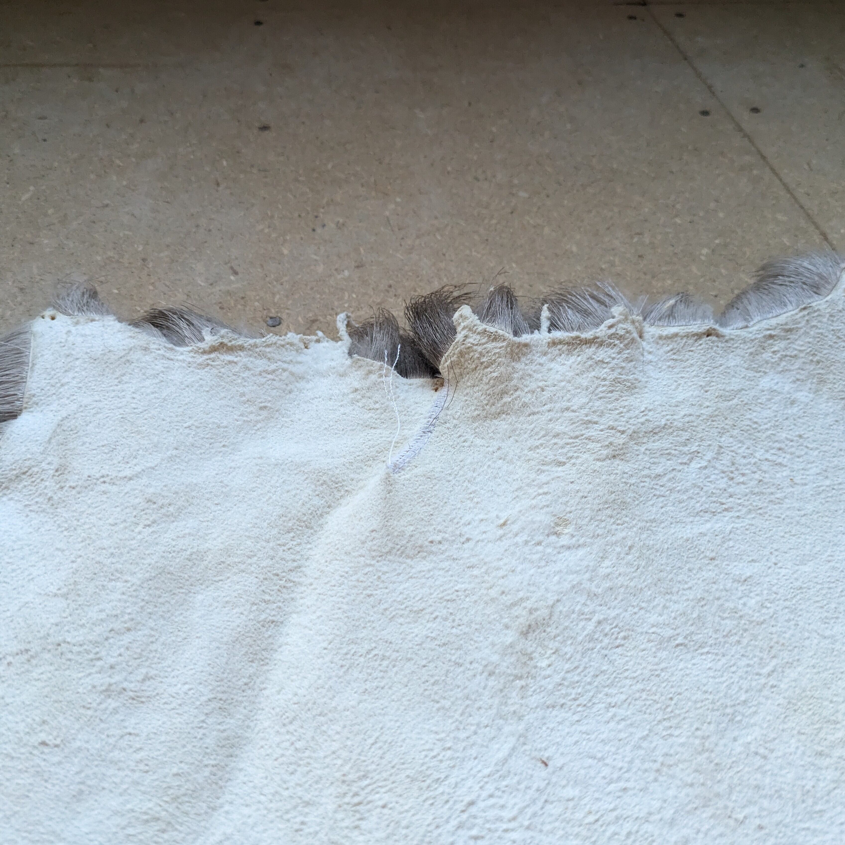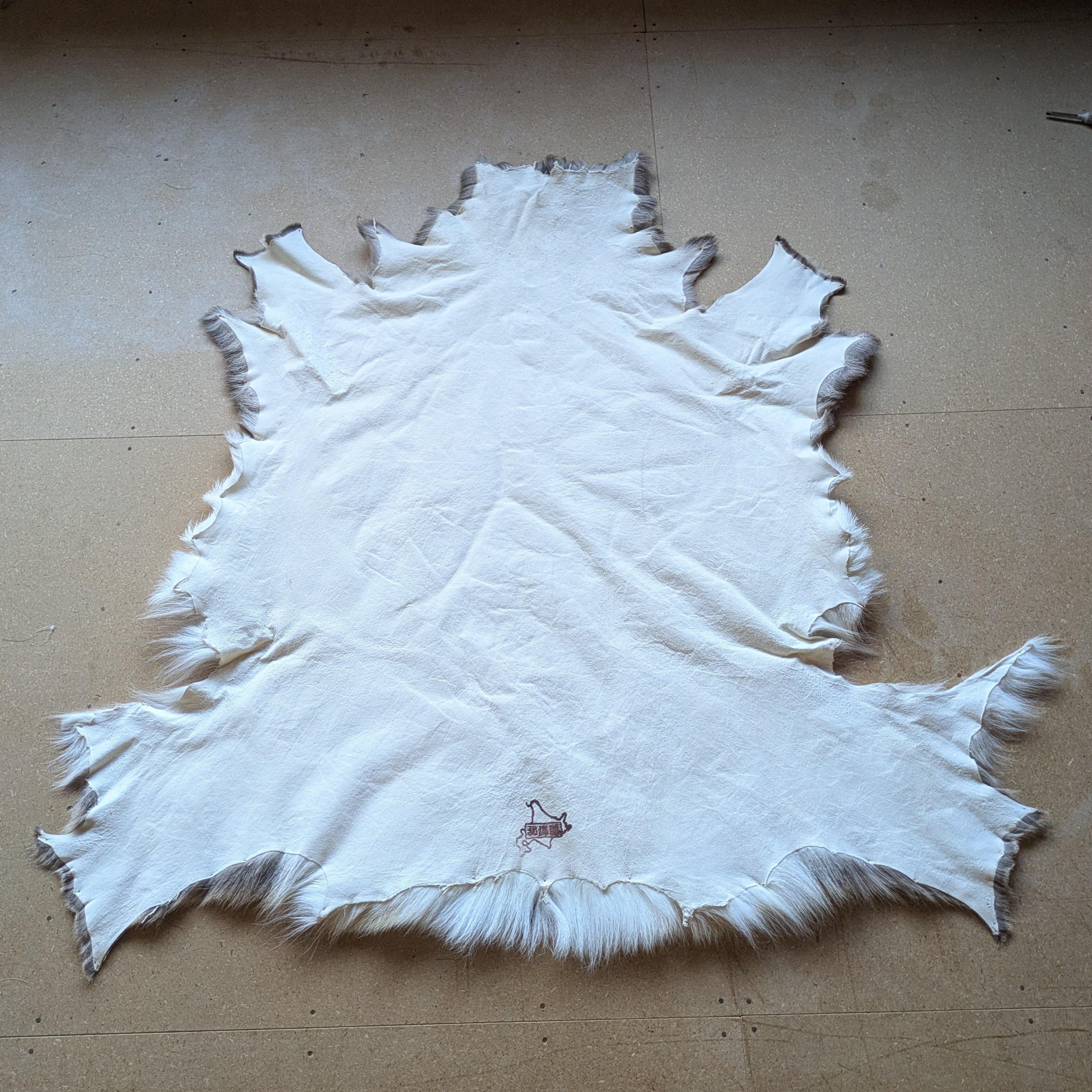 エゾシカの冬毛を使用したラグで、夏毛より分厚くなってますので防具として利用されてきました。