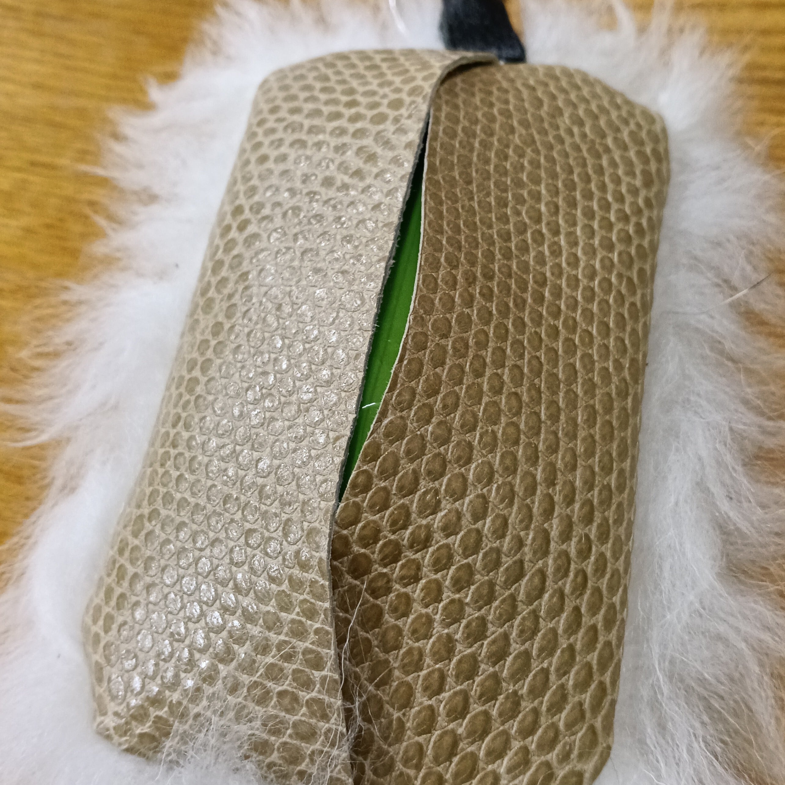 この商品はカシミヤの毛皮を使ったティッシュケースです