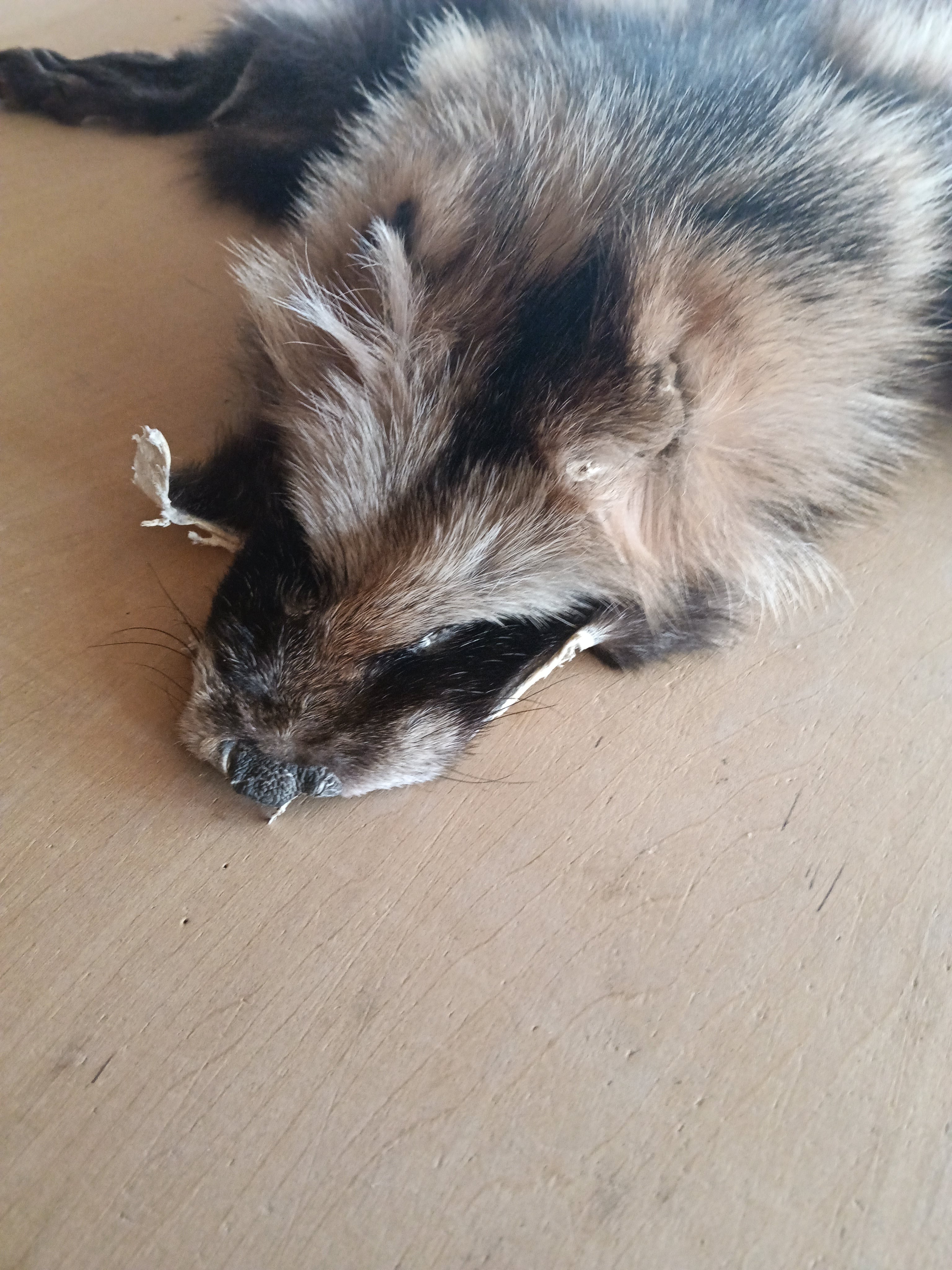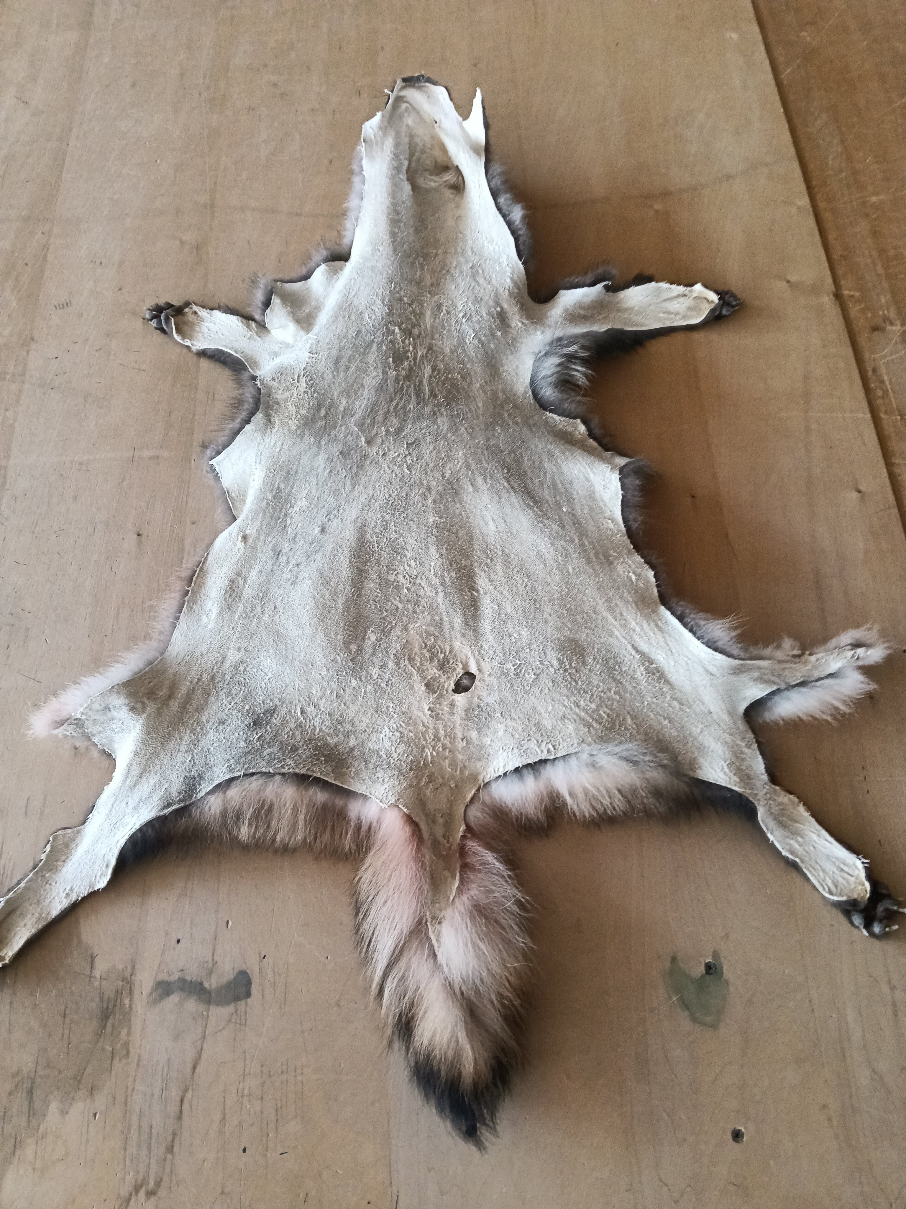 今回の皮は大変貴重な完品(前足、後ろ足計4本+顔、しっぽ付き)となっています