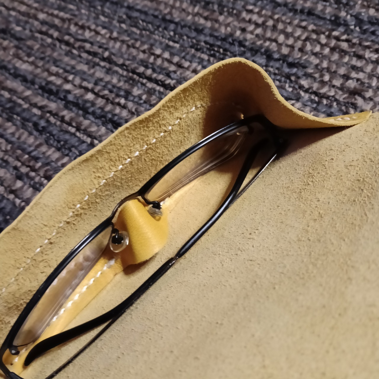 この商品はエゾシカレザーを使ったメガネケースです