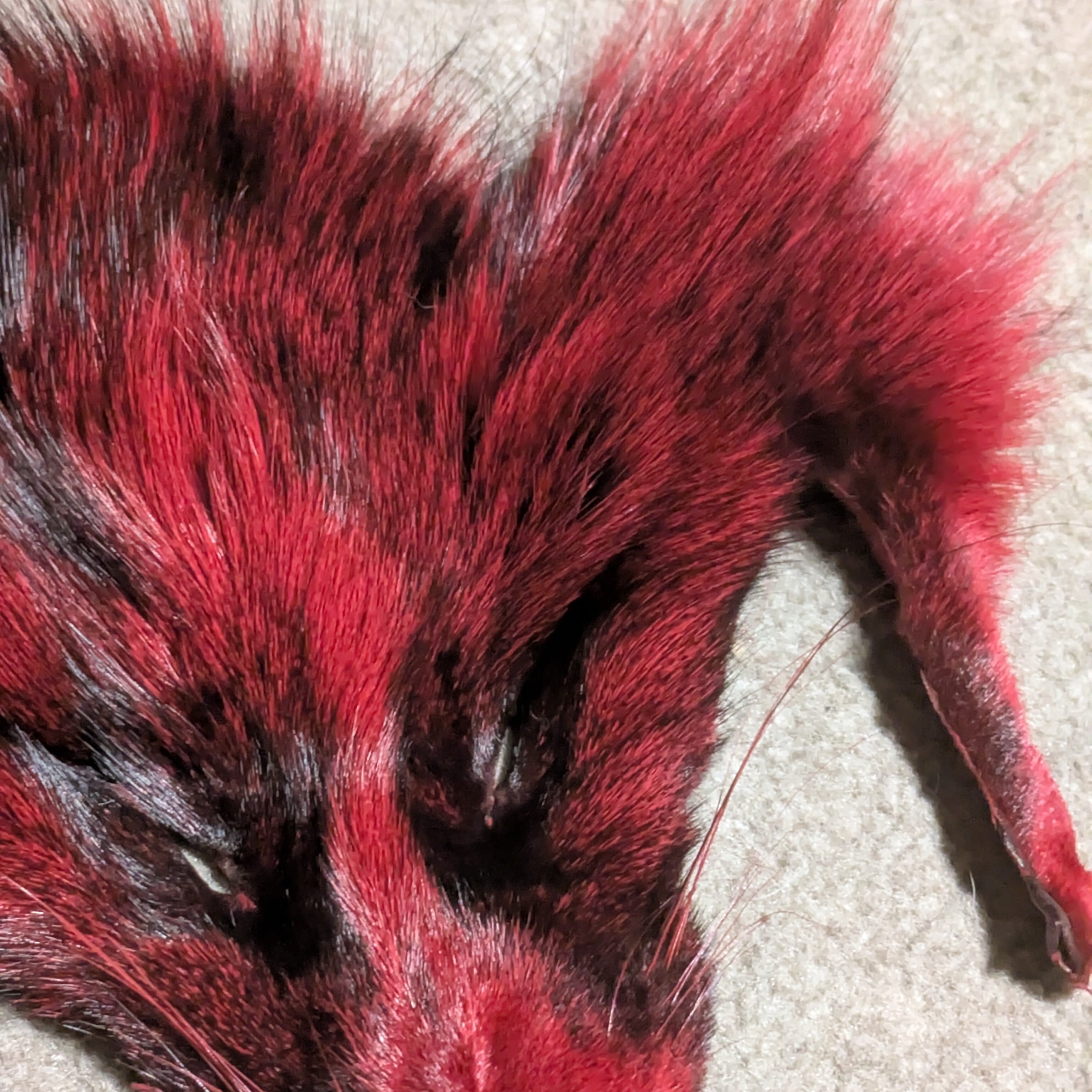 艶のある柔らかい毛質と普通のキツネの毛皮じゃあり得ない非現実感のカラーリングが特徴です!